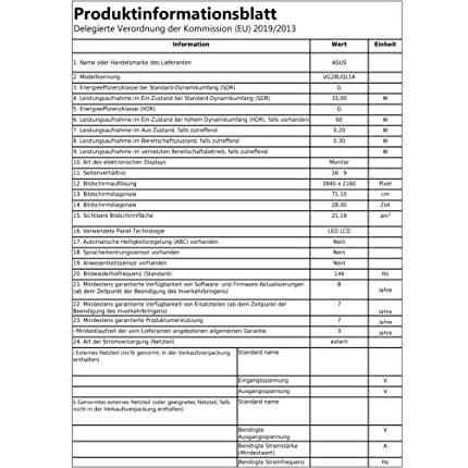 Asus VG28UQL1A Monitor LCD 28" 4K Ultra HD 3840 x 2160 Pixel 178° Nero