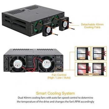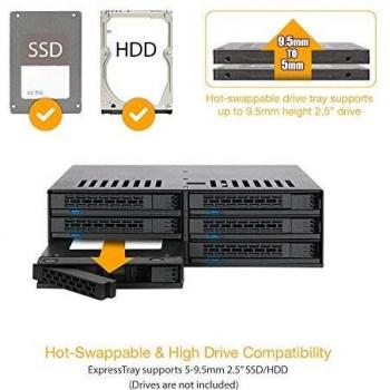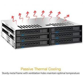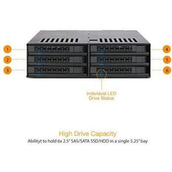 Rack 1U in nero con ventola integrata per sei unità da 2,5 cm, compatibile SATA/SAS SSD e HDD; dimensioni di 41,4 mm, peso di 438 g e design a ...