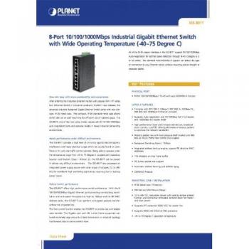Switch Planet IGS‑801T, otto porte Gigabit in formato IP30, consuma solo 6,7 W e gestisce temperature da ‑40 °C a 75 °C con umidità fino ...