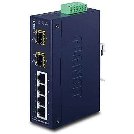 PLANET ISW-621TF - 4-port Ethernet Switch con 4 porte 10/100Base-TX e 2 porte 100Base-FX SFP IP30, temperatura di esercizio da -40 a +75°C