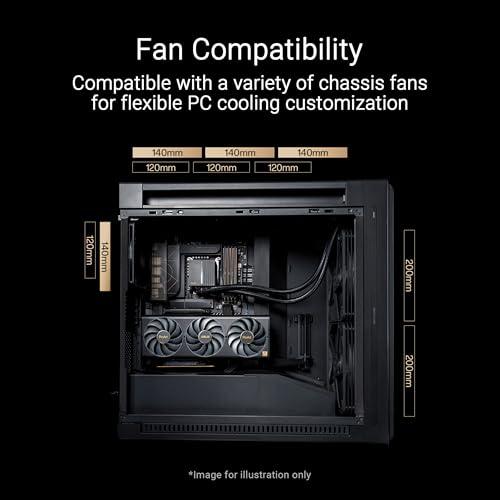Asus proart pa602 wood pwm black case gaming e-atx in metallo supporto per dissipatore da 420mm ventole da 140mm e 200mm rilevatore di polvere ir presa d`aria laterale nero