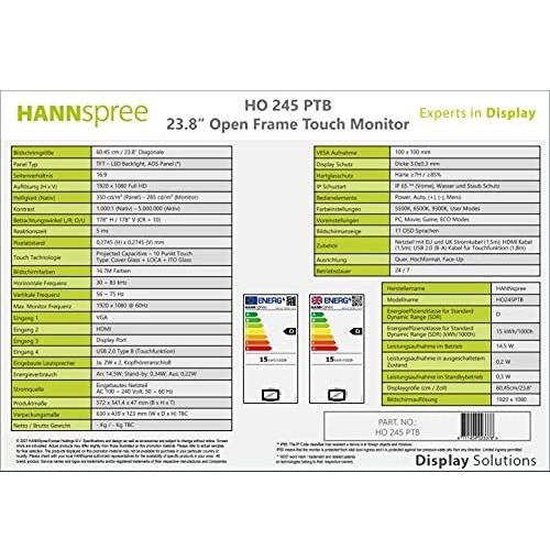 Hannspree - 4711404023378 - B08TRJNCCK - HO245PTB - D - 15 kWh - 23.8" - 285 cd/m - 16:9 - LED - Multi-touch - Sistema capacitivo progressivo - 1920x1 ...