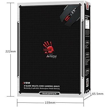 Mouse da gioco A4TECH Bloody V8MA, 8 pulsanti, resistente X'Glide Metal Armor Boot, motore ottico da gioco P3104, 3200 CPI, 1000 Hz
