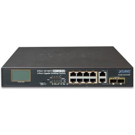 Planet FGSD-1022VHP 8 Porte 10/100TX PoE Switch a 2 Porte Gigabit TP/SFP con Monitor LCD PoE, 120 Watt