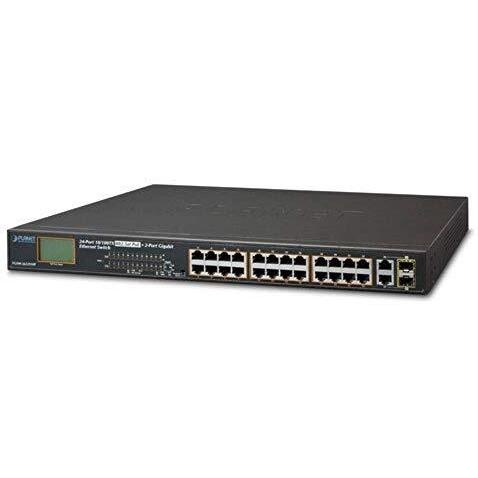 Switch Planet FGSW‑2622VHP: 24 porte Fast Ethernet 10/100 Mbps con PoE+ e due combo Gigabit TP/SFP, montabile in rack 1U, colore blu, perfetto per ...