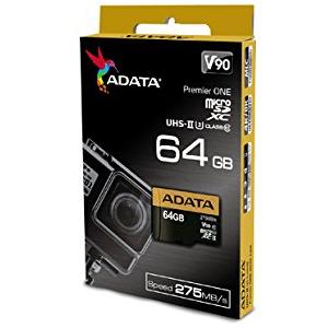 ADATA Premier ONE V90 64GB MicroSDXC UHS-II Class 10 memory card - Memory Cards (64 GB, MicroSDXC, Class 10, UHS-II, 275 MB/s, Black, Gold)