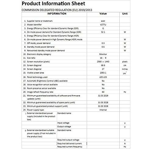 Monitor Acer V277Ubmiipx LED LED IPS 75 Hz