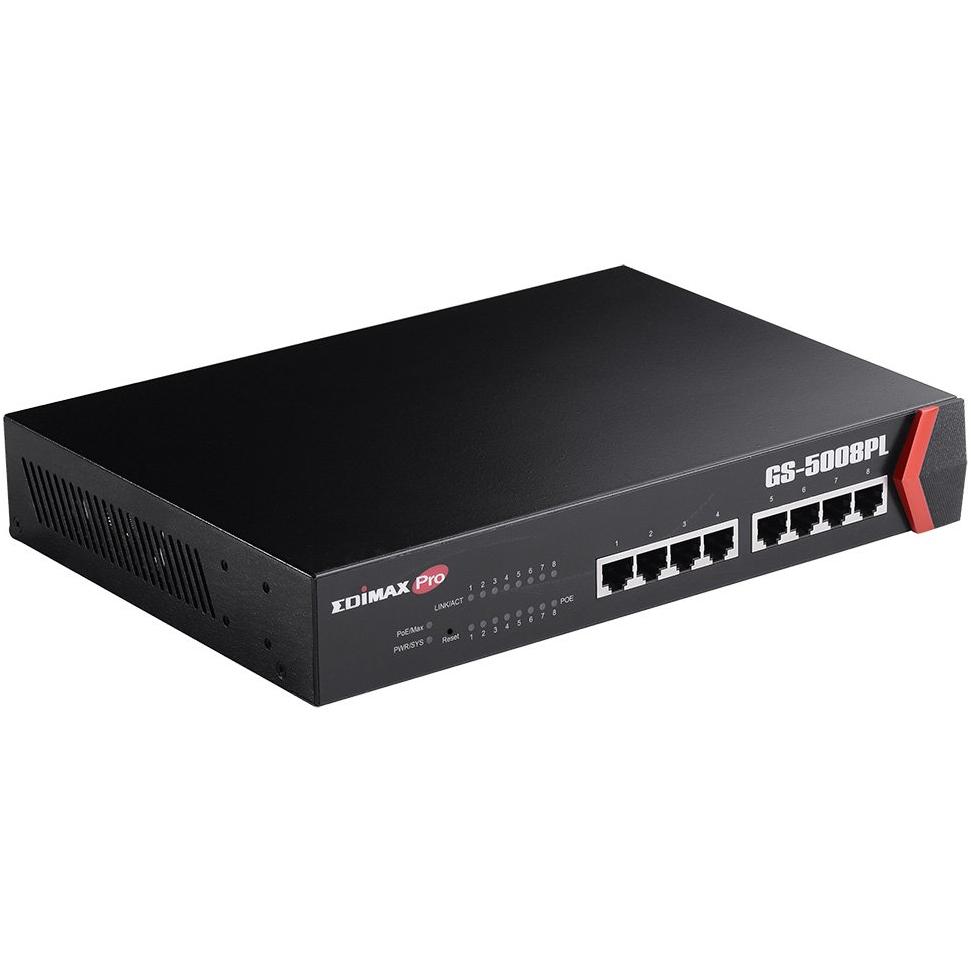 Edimax GS-5008PL Gigabit Ethernet (10/100/1000) Supporto Power Over Ethernet (Poe) 1U Nero
