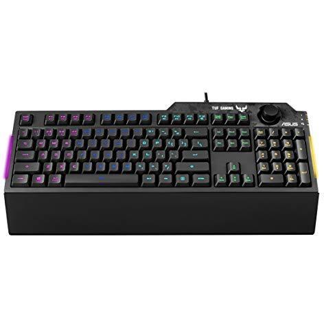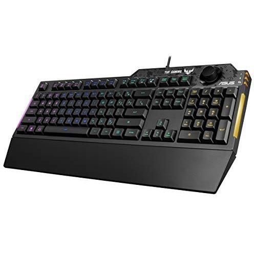 ASUS TUF Gaming K1 Tastiera Gaming USB, Membrana, RGB a 5 Zone, Rollover a 19 Tasti, Manopola Volume, Resistente ai Liquidi, Barra Luminosa Laterale, Macro Programmabili, Layout Italia, Nero