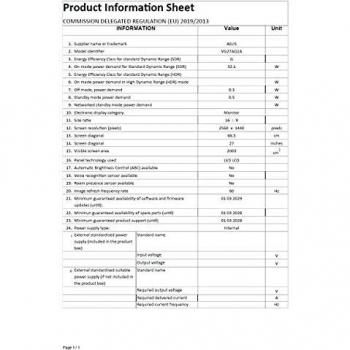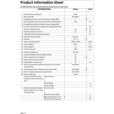 Asus - 4718017784047 - B08J4D98JB - VG27AQ1A - 194 mm - 36,7 cm - Altoparlanti incorporati - AMD FreeSync - 20 - 178° - Blocco cavo - AC - TUV Flic ...