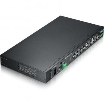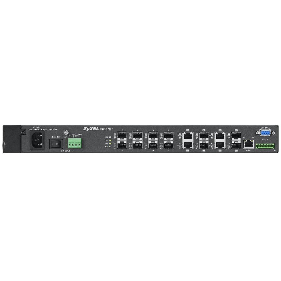 Switch ZyXEL MGS‑3712F è un Layer 2 gestito con 8 porte Gigabit, 4 slot SFP+ e buffer di 1 MB. Supporta VLAN, IGMP snooping, link aggregation, ...