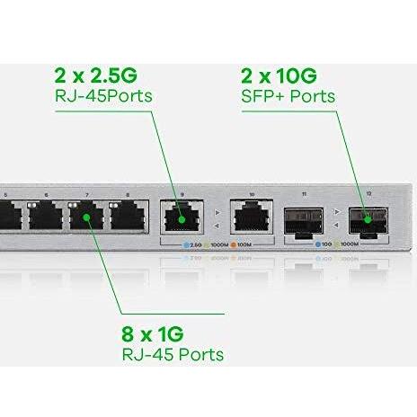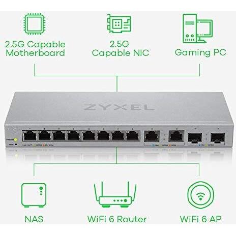 ZYXEL - Switch Multi-Gig 12-Port Web Managed con 2 Porte da 2,5 GB / 2 Porte da 10 GB SFP+ Montaggio a Parete / da Tavolo, 5 Anni di Garanzia [ XGS121