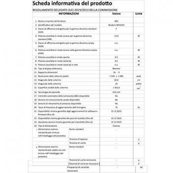 MSI - Monitor 23.8' LED IPS Modern MD241P Ultramarine 1920x1080 Full HD Tempo di Risposta 5 ms
