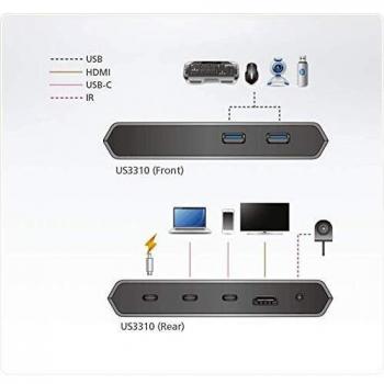 Aten 648991 Switch Dock USB-C™ Gen 1 a 2 Porte con Pass-Through dell'alimentazione, US3310 Silver
