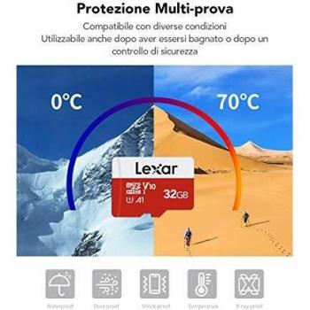 Scheda di Memoria microSDHC con Adattatore SD, Lexar, A1, U1, C10, V10, Classe 10, Vel
