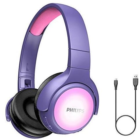 PHILIPS - Cuffie per bambina KH402PK / 00 Wireless Over Ear (Bluetooth, Limite Volume, 85 db, 20 ore di gioco, pannello LED, cuscinetti morbidi) Rosa
