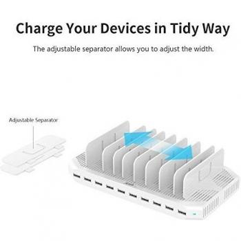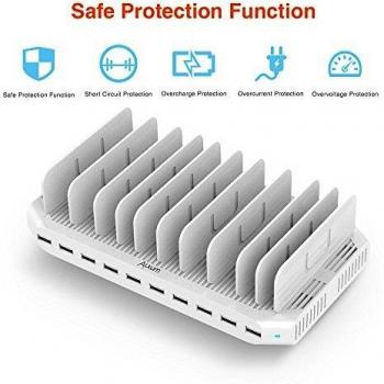 Alxum 96W Charging Station 10 Ports Multi-Charger Base Charging Multi-Porte Station Ricarica Cellulari, Charging Station Tablet e Altri Dispositivi Elettronici