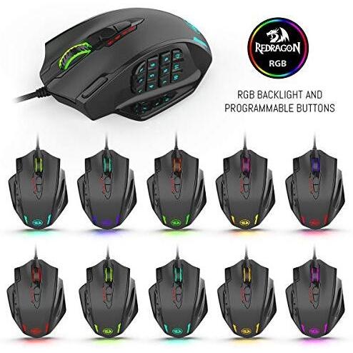 Redragon M908 RGB Retroilluminazione LED Mouse da gioco cablato USB 18 pulsanti mouse programmabili 12400 DPI