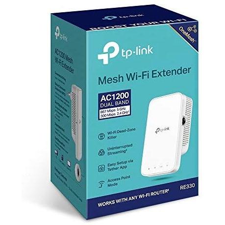 TP-Link RE330 Mesh Wi-Fi Ripetitore Wifi Wireless, Dual-Band 1200 Mbps, Access Point, Nuovo Prodotto con Tecnologia TP-Link Onemesh, con cavo Ethernet