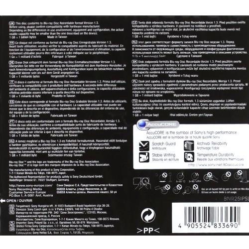 Sony BD-R 25GB BNR25IPSL Printable Blu-ray registrabile (BD-R) - Confezione da 1
