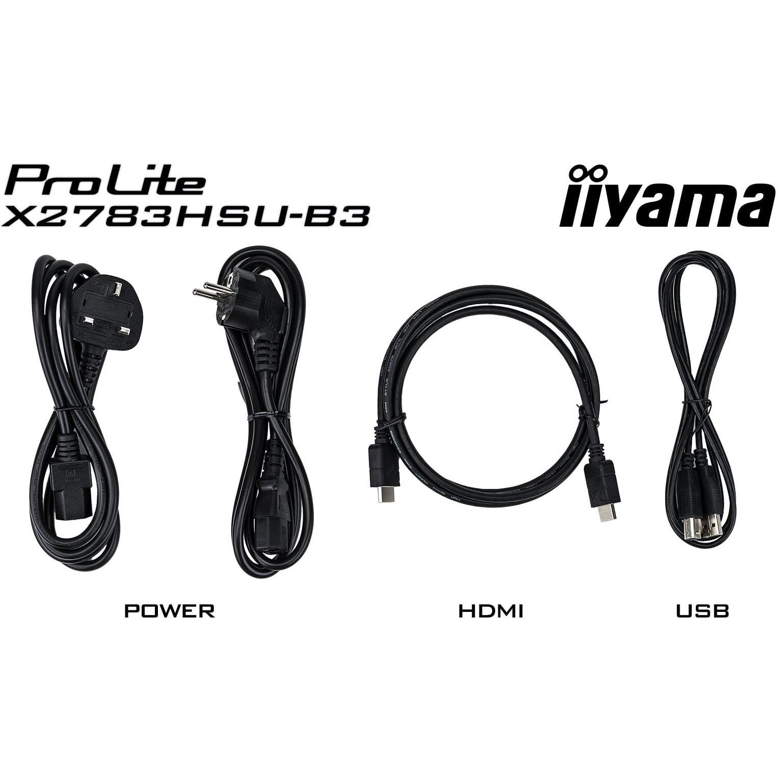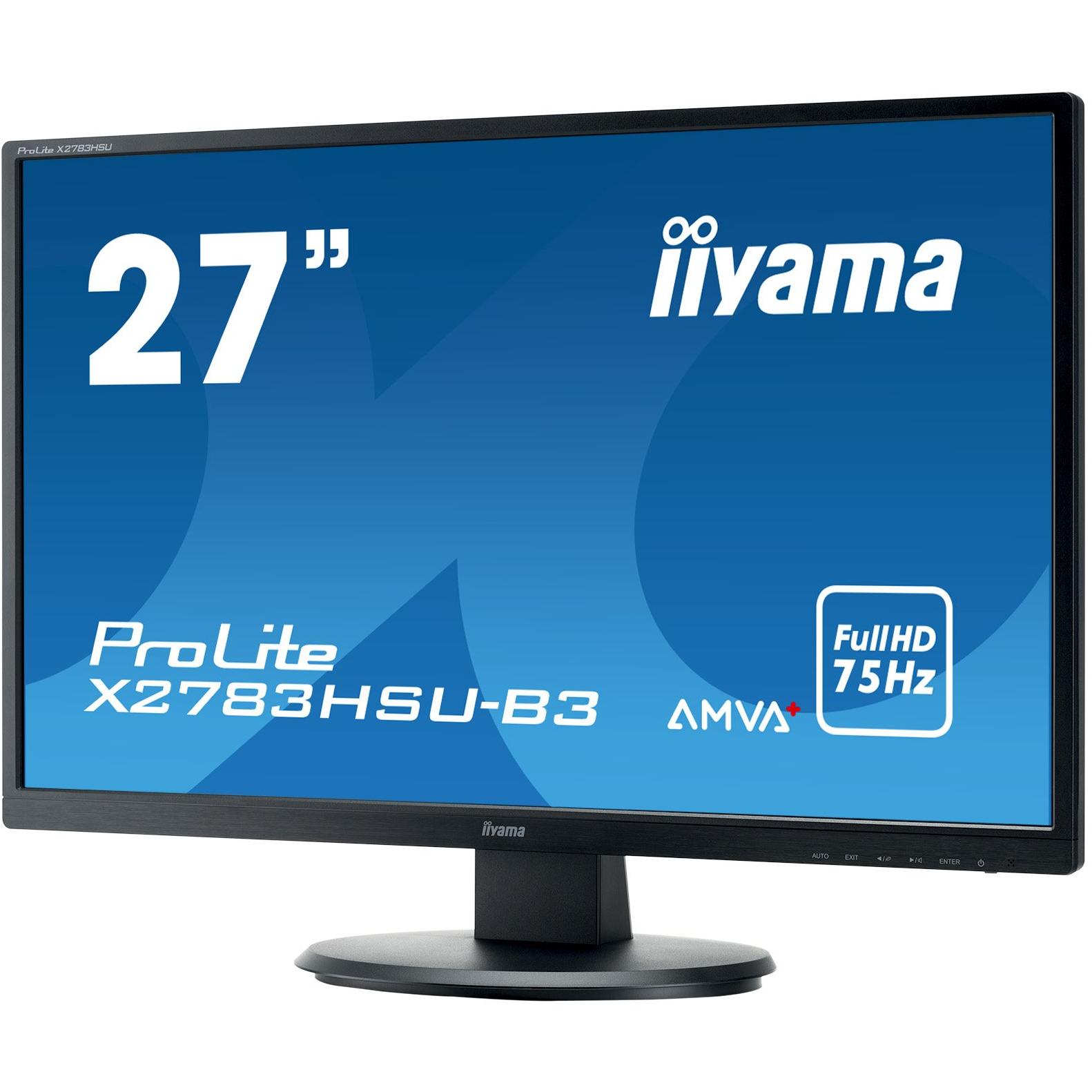 Iiyama ProLite X2783HSU-B3 68.6 cm, 27 Pollici, AMVA+ LED-Monitor Full-HD, VGA, HDMI, DisplayPort, USB2.0, Nero