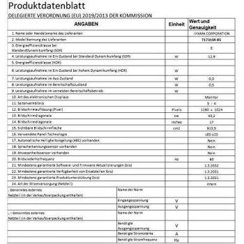 iiyama - 4948570116010 - B07DLQ7QMD - T1731SR-B5 - 2 W - 33.8 cm - 27 cm - 5:4 - 50 - 31 - 1280x1024 - 100