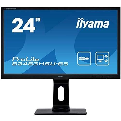 Iiyama ProLite B2483HSU-B5 Monitor LED da 61 cm (24"), Full HD (VGA, HDMI, DisplayPort, USB2.0, regolabile in altezza), colore: Nero