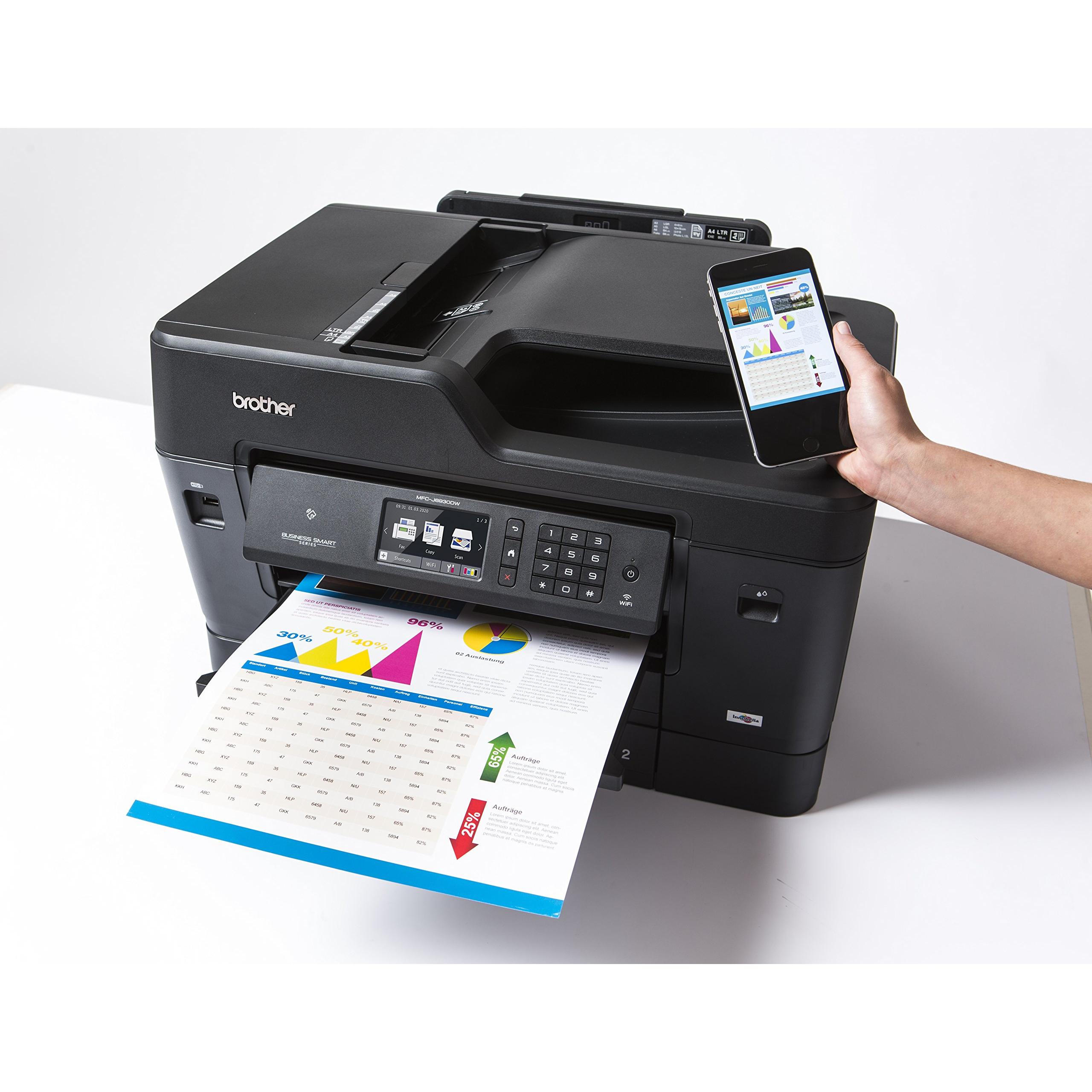 Stampante Brother MFCJ6530DW: stampa a colori A3, scansione a 1200x2400 DPI, copia e fax con memoria di 200 pagine, duplex automatico, Wi‑Fi, NFC ed ...
