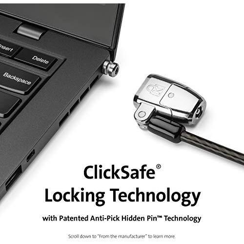 Kensington ClickSafe 2.0 3-in-1 Lock with Key for Universal Laptop Lock Compatibility with Standard T-Bar, Nano or Wedge Slots (K68102EU)