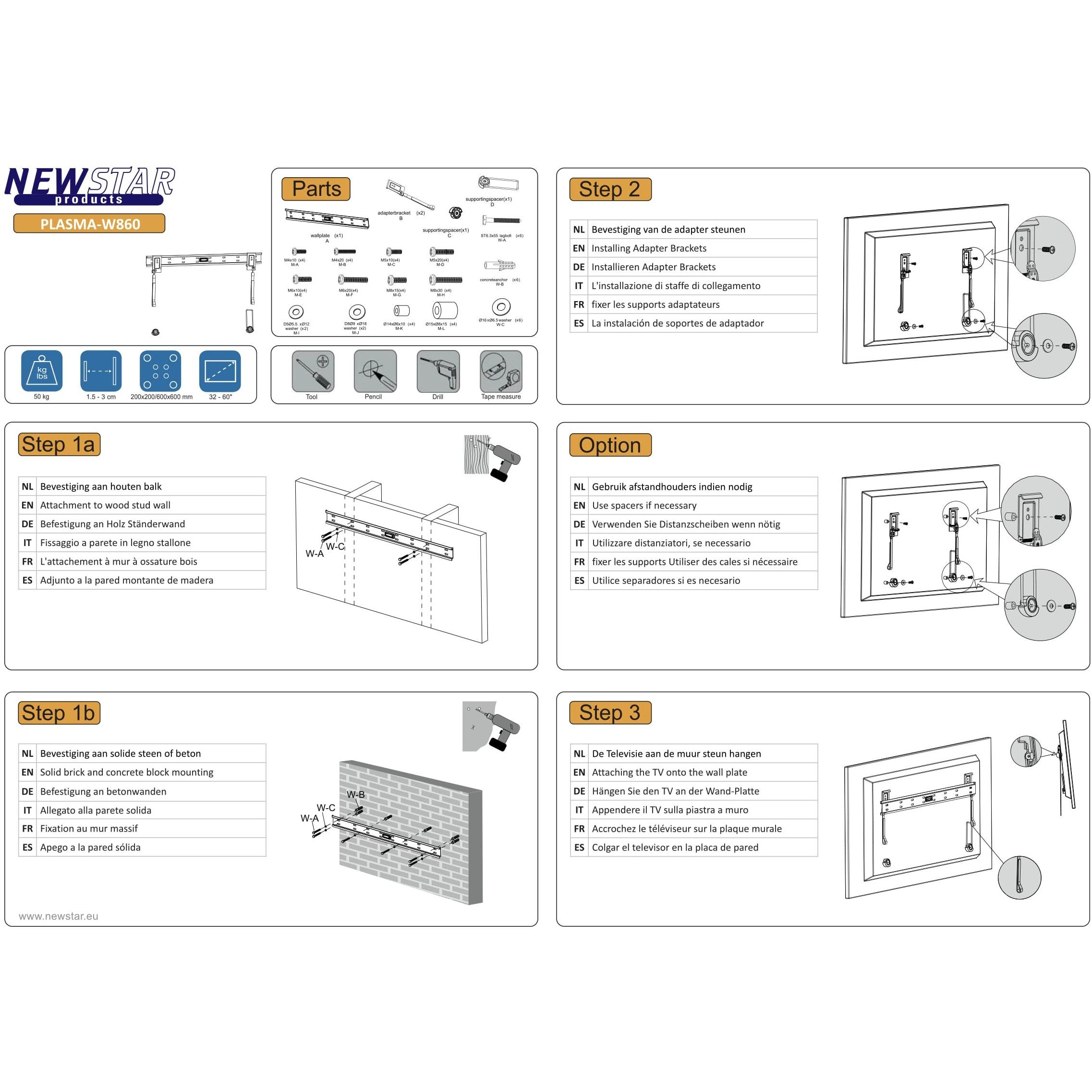 NewStar PLASMA-W860 Supporto da Parete per Monitor TV Nero 32-60" 50Kg