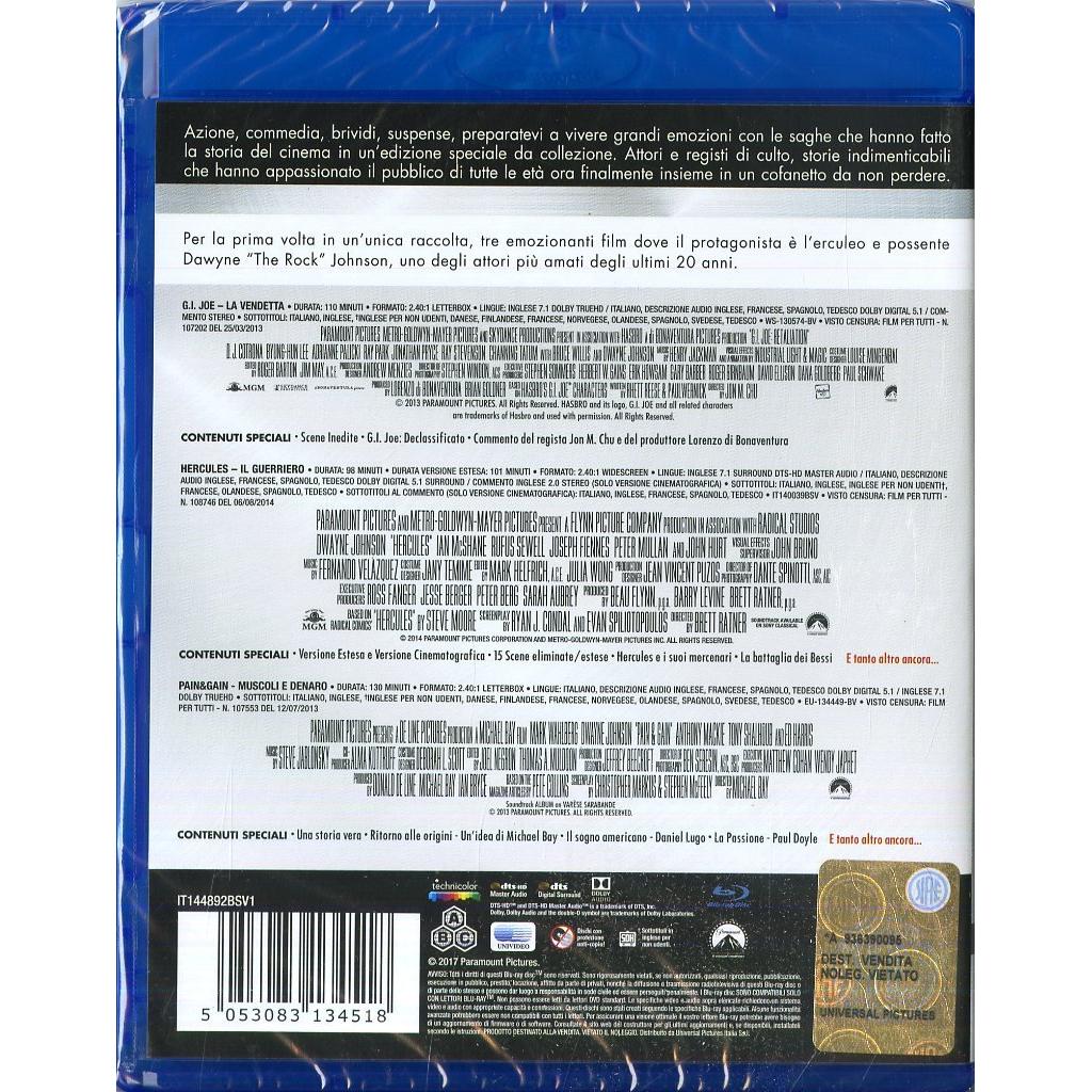 Un set Blu‑ray che raccoglie tre grandi hit di Dwayne Johnson: G.I. Joe, Hercules e Pain & Gain, con audio in Dolby Digital 5.1, sottotitoli itali ...