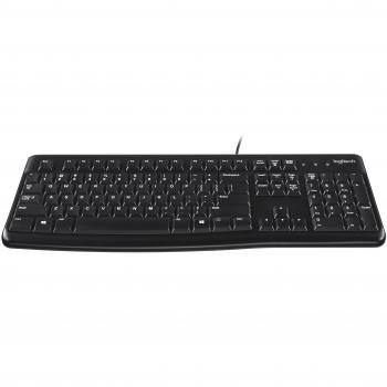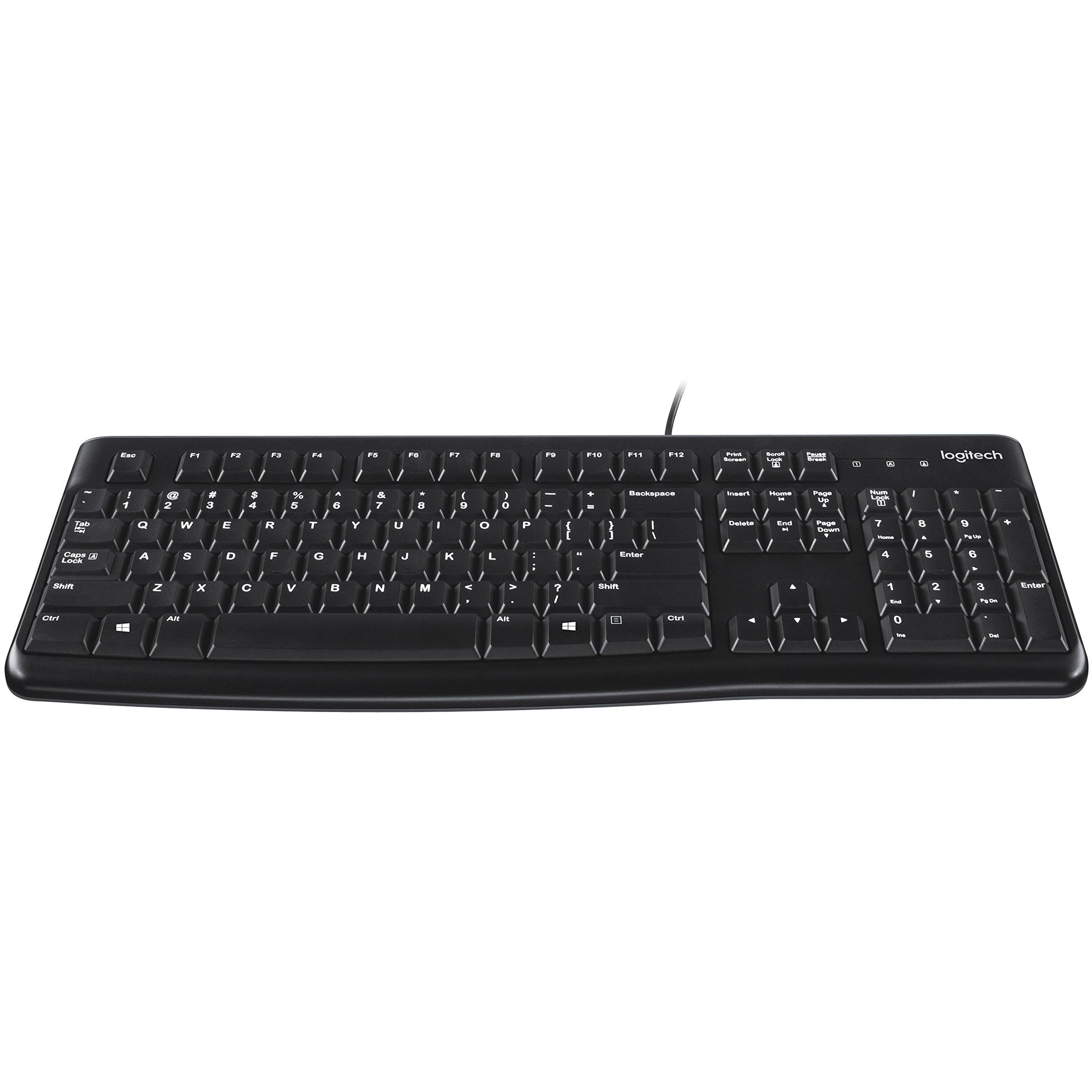 Tastiera Logitech K120 in nero, layout QWERTY US, ideale per ufficio e uso domestico. I tasti solidi offrono digitazione silenziosa e resistenza a lun ...