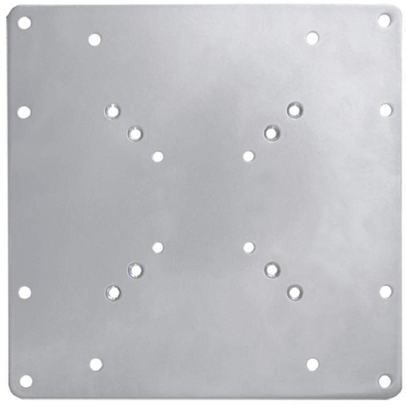 Piastra di conversione Vesa argento FPMA‑VESA200, dimensioni 200x200 mm, adatta a schermi da 22” a 42”. Supporta fino a 35 kg e si monta su pa ...