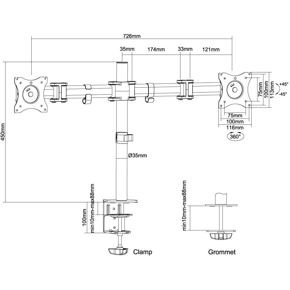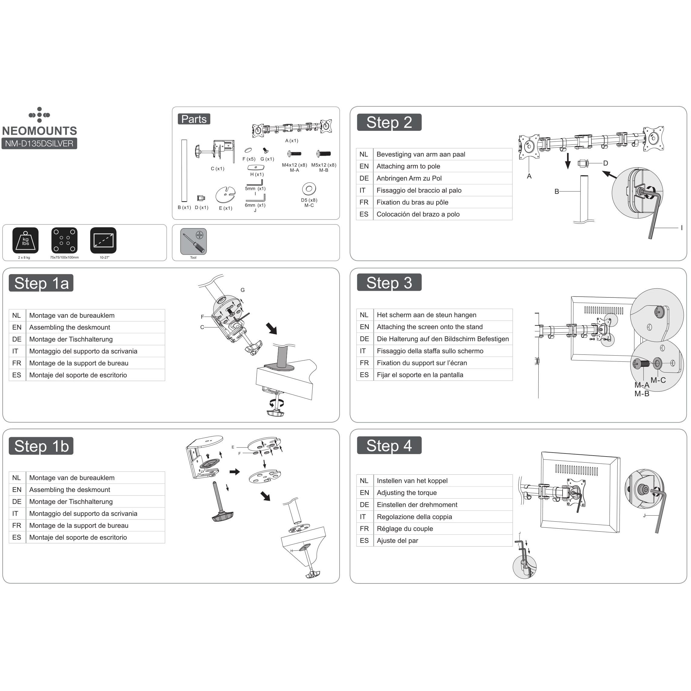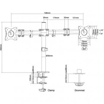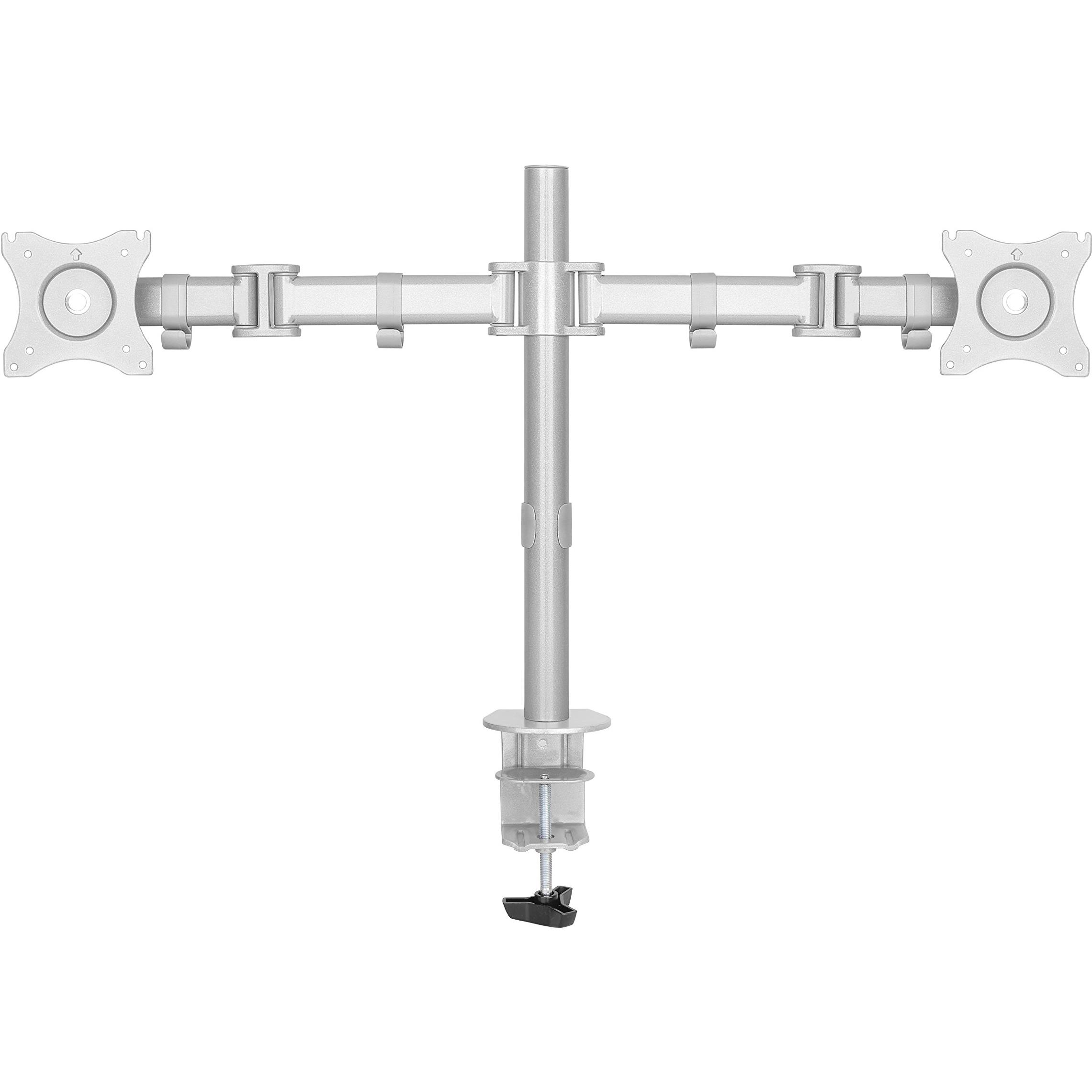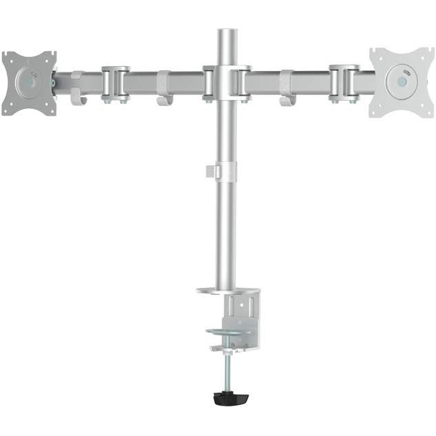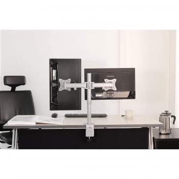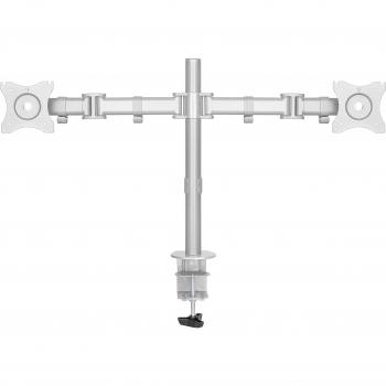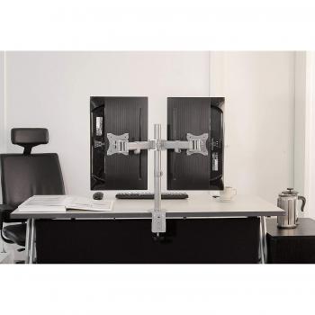Supporto da tavolo Newstar NM‑D135DSILVER in argento, adatto a due monitor fino a 27”. Offre regolazione manuale dell’altezza, inclinazione 0– ...