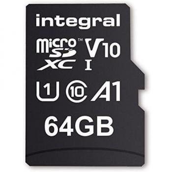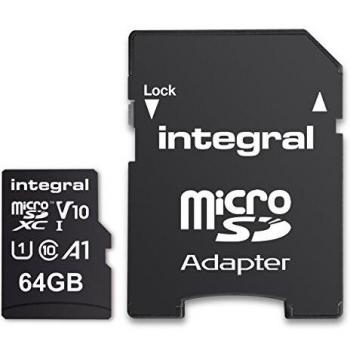 Integral Scheda Micro SD di memoria integrale (64 GB, microSD, U1, UHS-I), Scheda di memoria, Nero