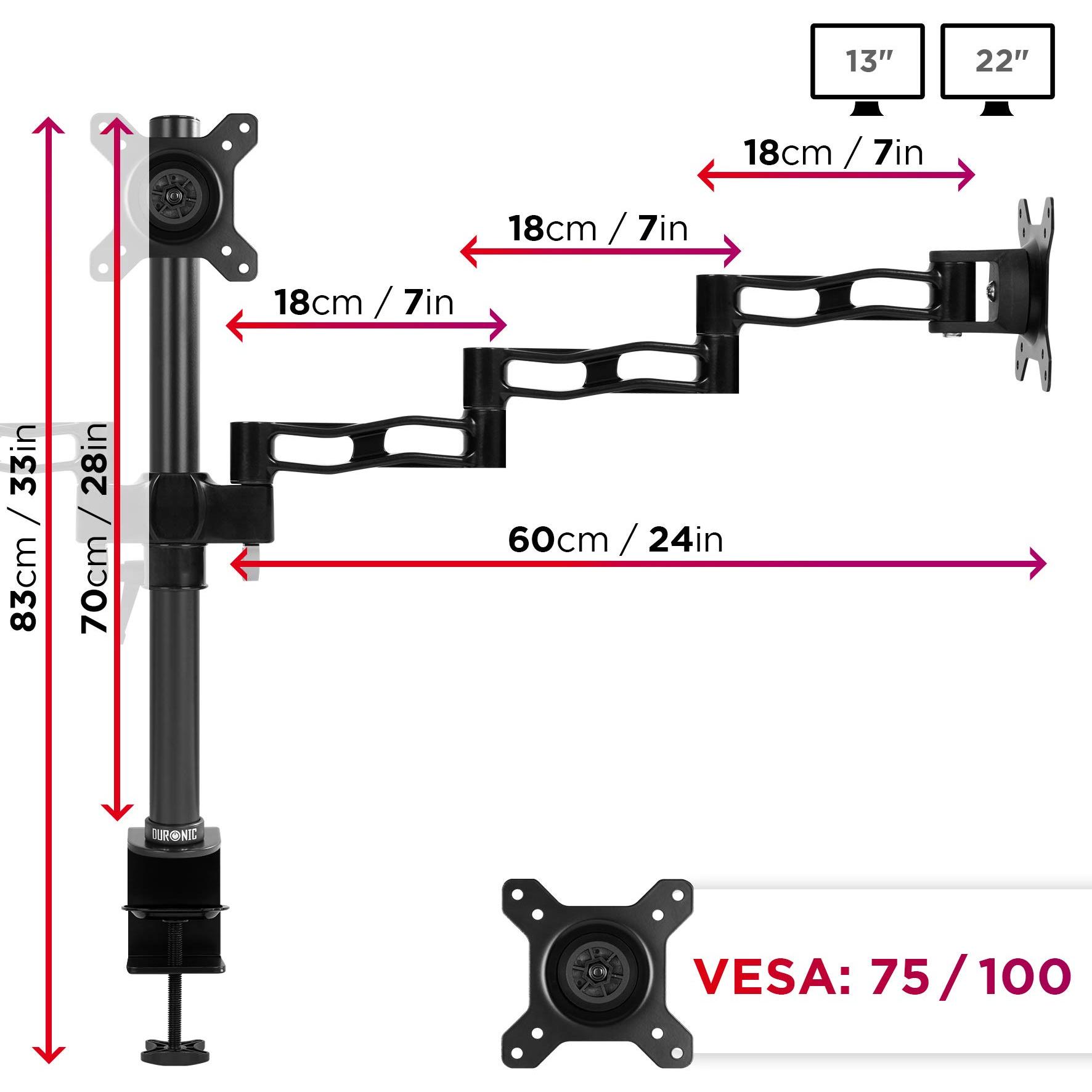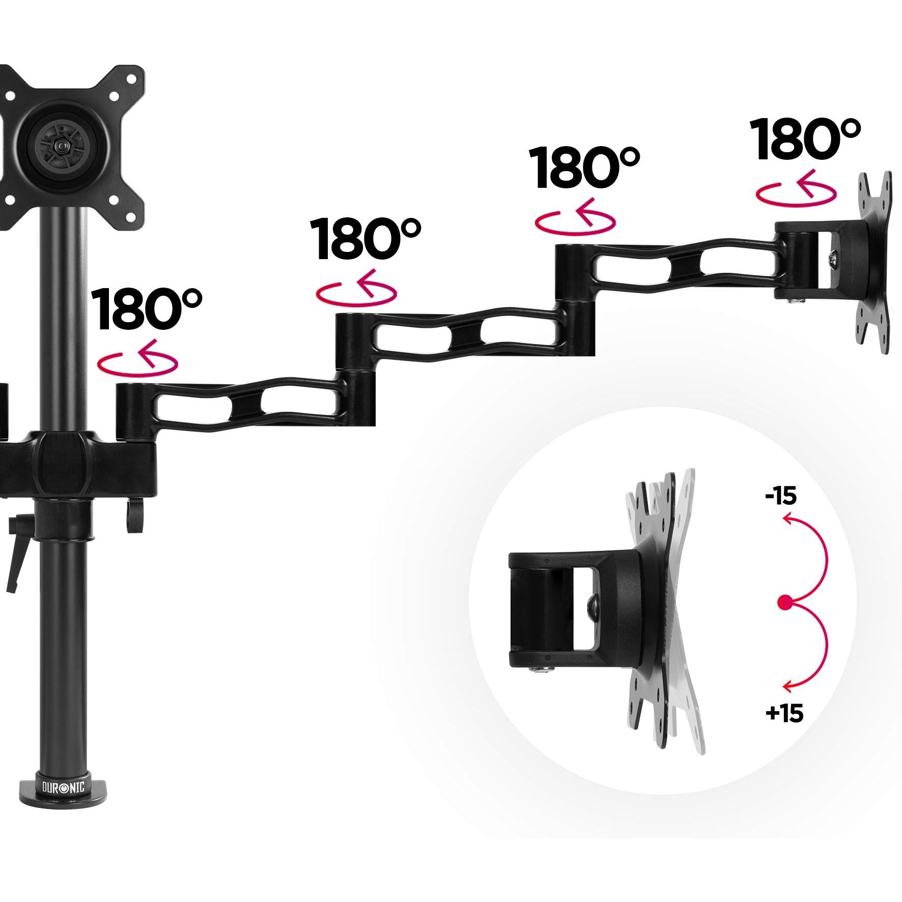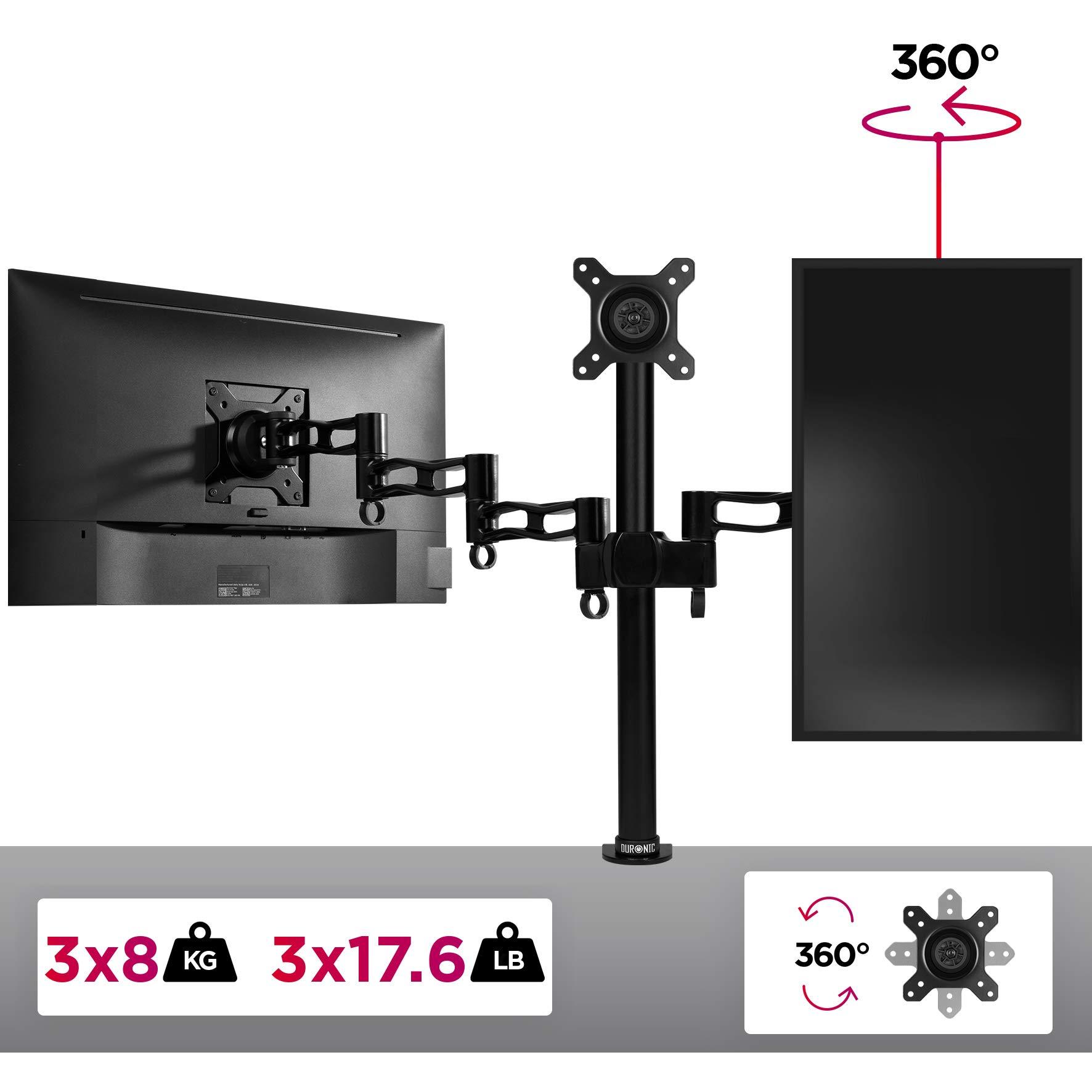 Duronic - Dm353 Triplo Supporto 3 Monitor Da Scrivania Con Morsetto - Braccio Monitor Da Tavolo In Alluminio - Altezza Regolabile E Orientabile - Comp
