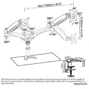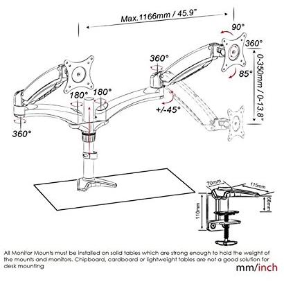 Duronic - Dm552 Supporto Da Scrivania Per 2 Monitor 15" - 27" Staffa Supporto Monitor / Schermo Con Due Braccia Estensorie Regolazione A Molla Morsett