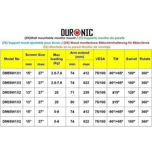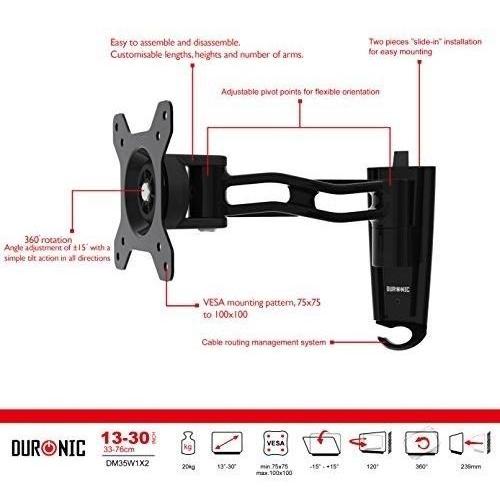 Duronic - Dm35w1x2 Supporto Da Parete Monitor 13" - 27" Staffa Supporto Monitor / Schermo Con Braccio Estensore Vesa Max 100 X 100mm Struttura In Lega