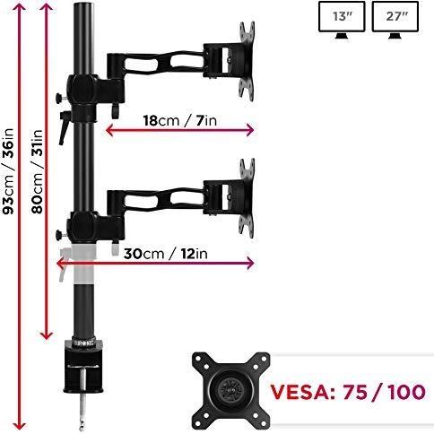Duronic - Dm35v2x2 Doppio Supporto Verticale 2 Monitor Da Scrivania Con Morsetto - Lunghezza Staffa 80cm - Altezza Regolabile E Orientabile - Compatib