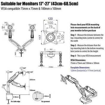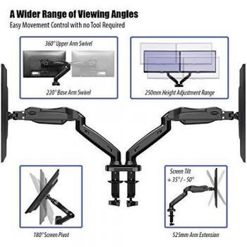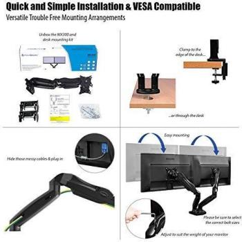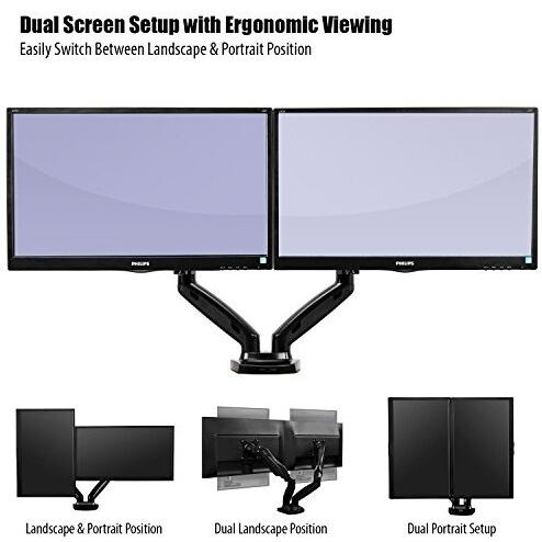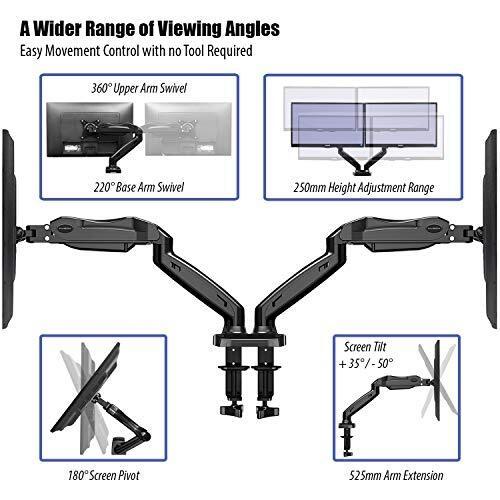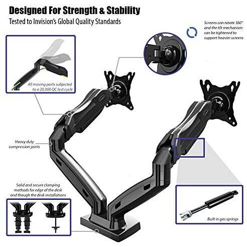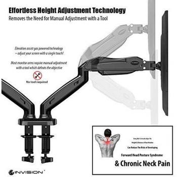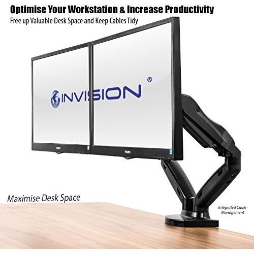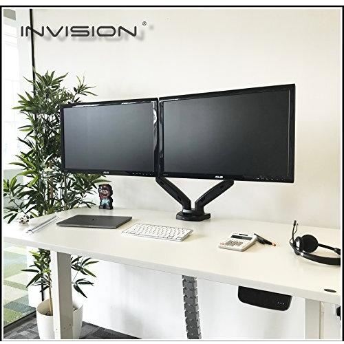 Invision Supporto Monitor Doppio - Ergonomico Altezza Regolabile (Assistenza Gas) per Schermi 17 a 27 Pollici - Inclinazione e Girevole VESA 75x75mm e 100x100mm Peso 2-6,5 kg (MX300)