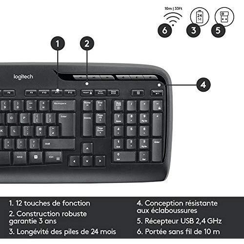 Logitech MK330 (FR, Senza fili), Tastiera, Nero