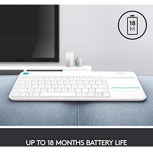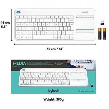 Logitech K400 Plus Tastiera Wireless, Layout Scandinavo Qwerty, Bianco