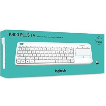 Logitech K400 Plus Wireless Touch Keyboard for TV with Easy Media Controls and Integrated Touchpad in English QWERTY Layout - White