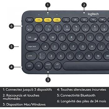 Logitech K380 Wireless Keyboard, Bluetooth, French AZERTY layout, Black
