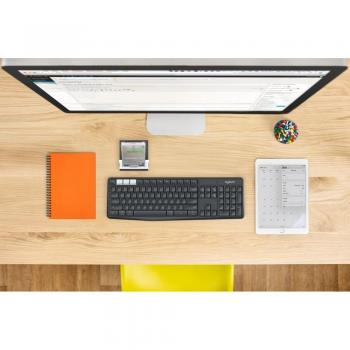 Tastiera wireless Logitech K375s grafita con layout italiano, ricevitore Unifying e Bluetooth a 2,4 GHz. Due batterie AAA garantiscono 24 mesi di au ...