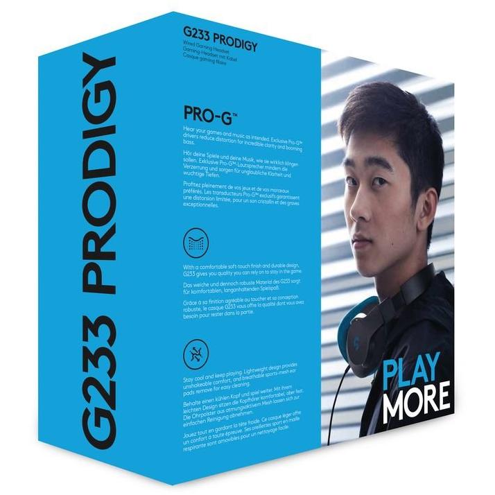 Cuffie Logitech G233 Prodigy con microfono a cancellazione del rumore offrono audio stereo da 20 Hz a 20 kHz, driver di 40 mm e volume regolabil ...