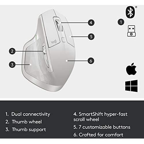 Logitech MX Master 2S Wireless Mouse for Mac and Windows, Light Gray