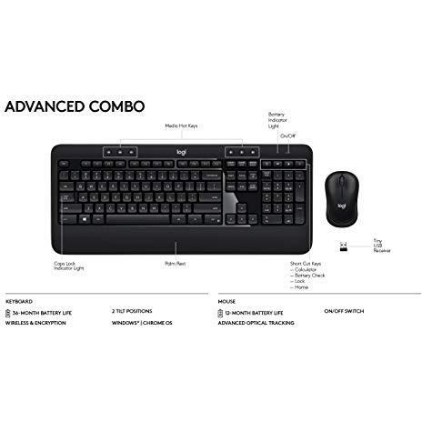Logitech MK540 - Tastiera wireless con mouse M185 a 6 pulsanti - Set di tastiere e mouse per computer (QWERTZ tedesco, nero)