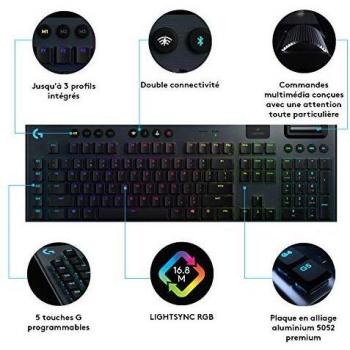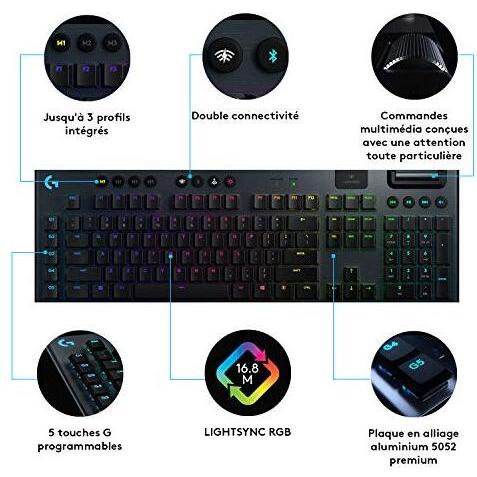 Logitech G915 Lightspeed è una tastiera meccanica senza fili con interruttori GL Tactile, illuminazione RGB e layout AZERTY. Design sottile ed elegan ...
