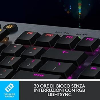 Logitech G915 LIGHTSPEED Tastiera Gaming Meccanica Wireless, Profilo Ribassato, GL-Tactile Switches, LIGHTSYNC RGB, Design Sottile, +30 ore di Durata della Batteria, QWERTY US Layout, Nero